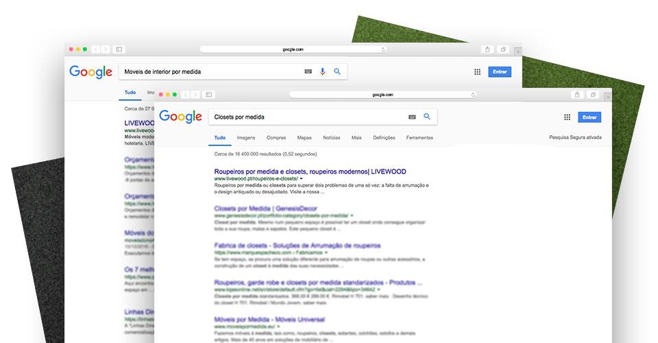 Resultados (agosto de 2018): 1º lugar para pesquisas por “móveis de interior por medida”, “móveis modernos por medida”, “móveis de casa de banho por medida” e “closets por medida”; 3º lugar para “mobiliário de interior por medida”; e 7º lugar para “móveis de cozinha por medida”.